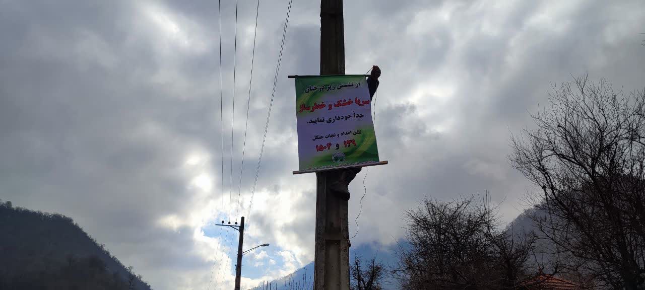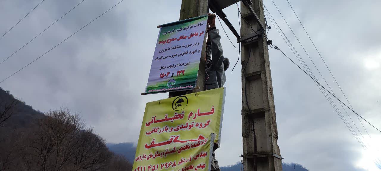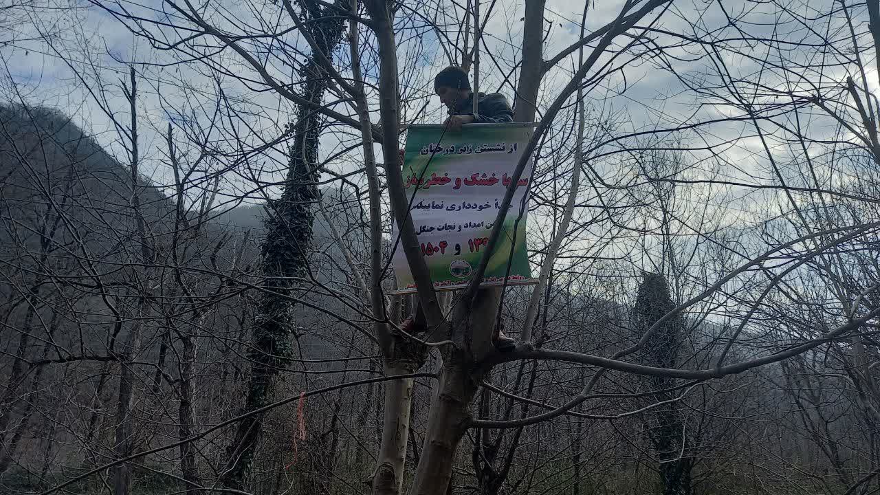 نصب بنرهای هشدار دهنده ترویجی در مناطق تفرجگاهی جنگلی و پر تردد پارک های جنگلی علی آبادکتول