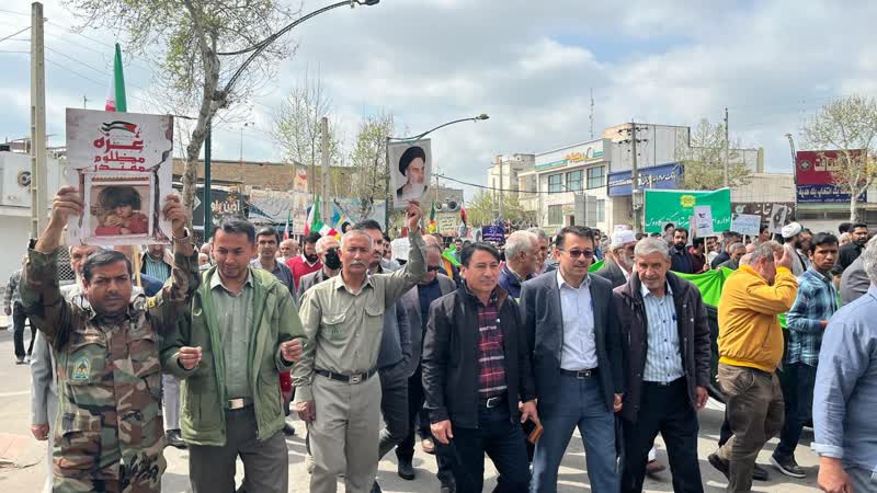 به گزارش پایگاه اطلاع رسانی اداره کل منابع طبیعی و آبخیزداری گلستان، مهندس رحمانی رییس اداره، معاون، کارشناسان و نیروهای حفاظتی همراه شهروندان ولایتمدار و متدین روزه دار گنبدگاووس و مردم سراسر کشور با حضور پرشور خود در راهپیمایی روز جهانی قدس با آرمان های امام(ره) و مقام معظم رهبری(مدظله العالی) تجدید بیعت و حمایت خود را از ملت مظلوم فلسطین ابراز کردند.