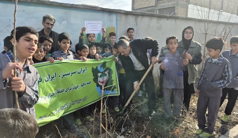 کاشت نهال به مناسبت روز ملی هوای پاک در مدرسه امام محمدباقر نگین شهر شهرستان آزادشهر