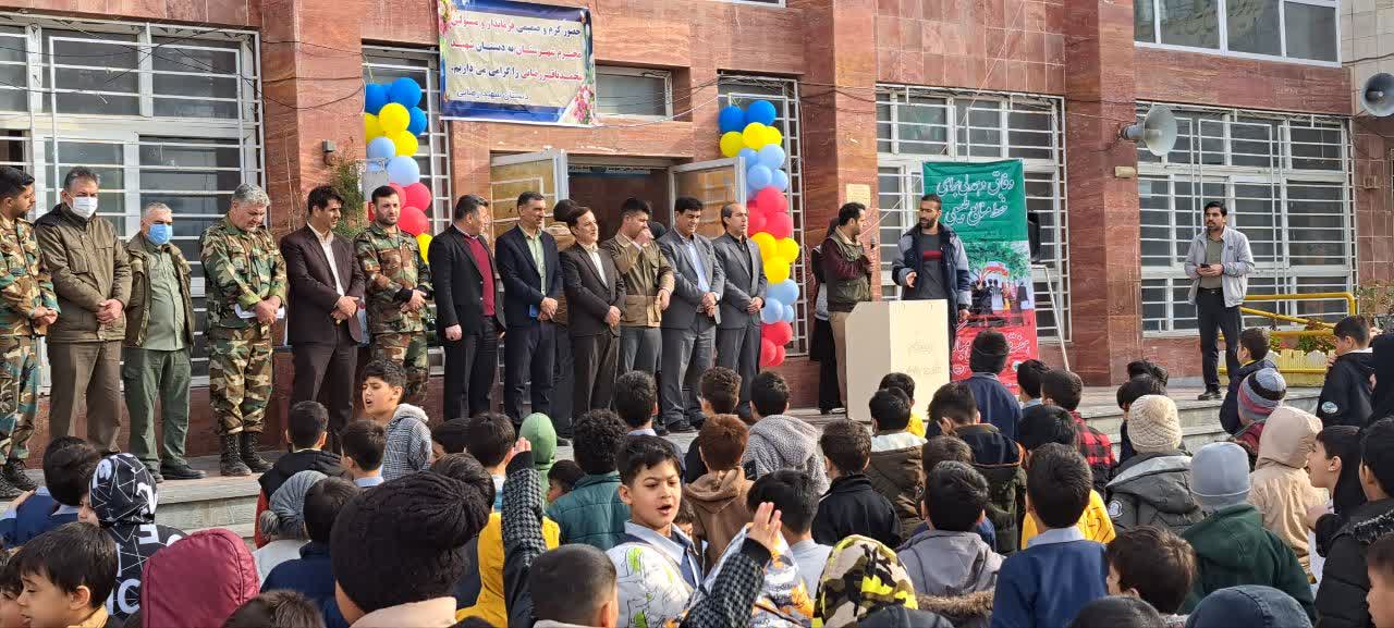 همچین در این مراسم ۵ اصله نهال مثمر با مشارکت مسئولین و دانش آموزان غرس گردید و از نقاشی دیواری و نمایشگاه سبز دانش آموزان بازدید بعمل آمد .